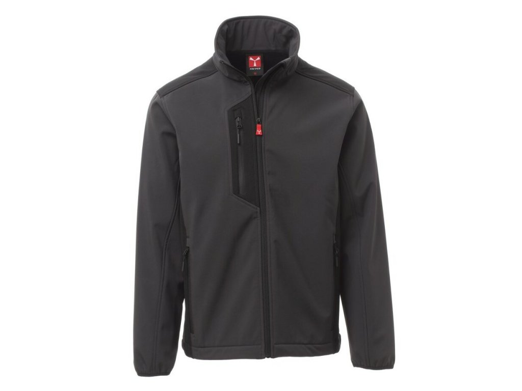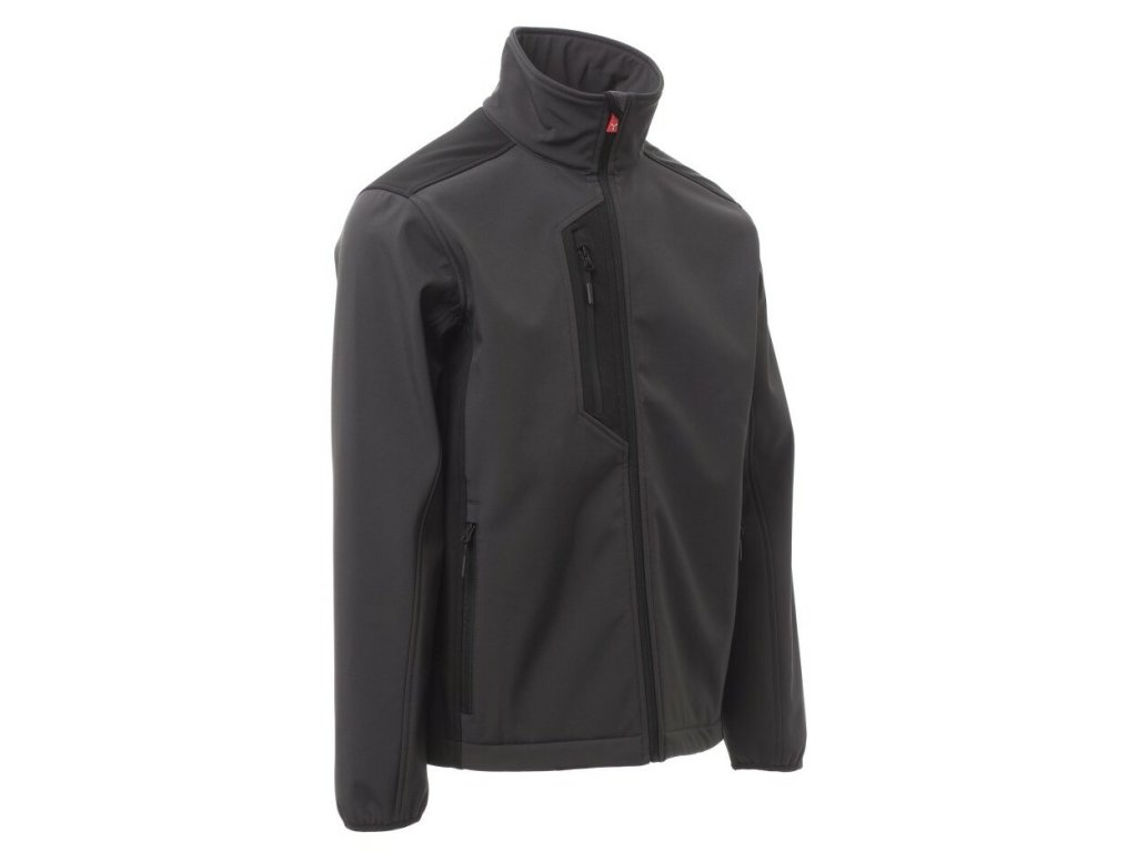 Pánský softshell 3 vrstvy, dvoubarevný, zapínání na zip s kovovým jezdcem „semi-auto lock“ a přizpůsobeným taháčkem.