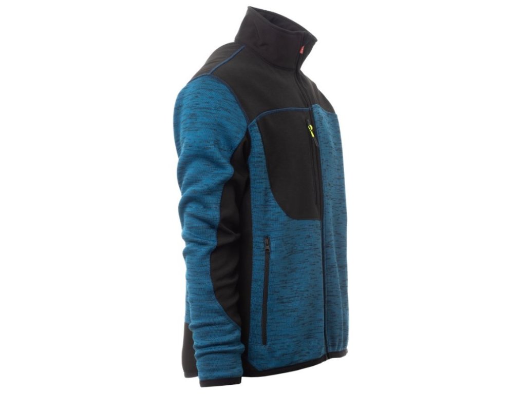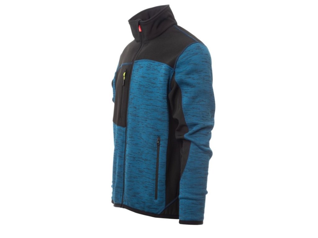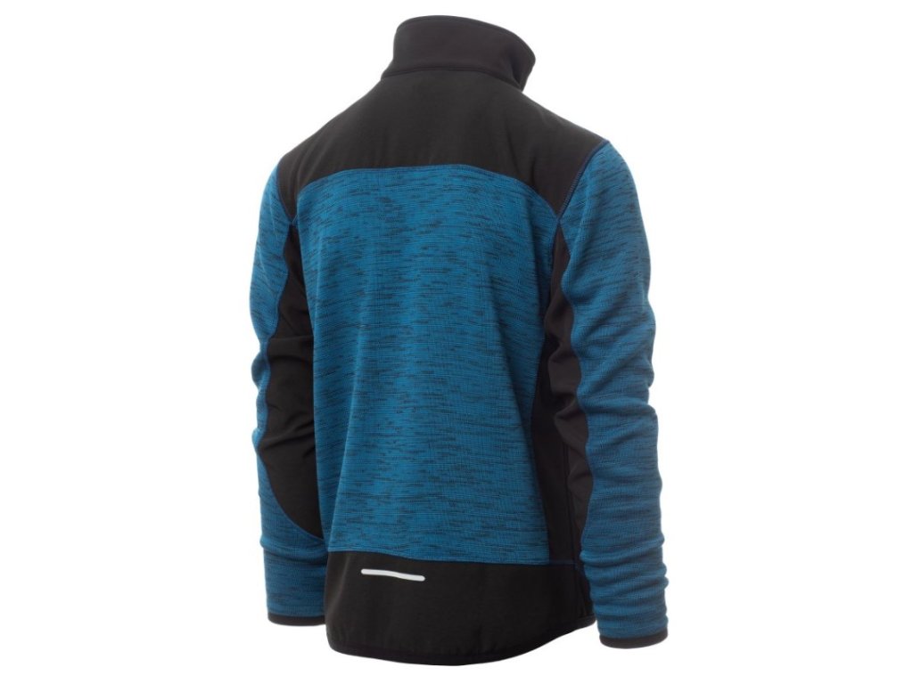 Mikina s kontrastními softshellovými vsadkami, zapínáním na páskový zip s jezdcem „semi-autolock“. Lemování na manžetách a spodní části. 2 boční kapsy na zip, 1 tvarovaná kapsa na hrudi se zapínáním na zip. Reflexní prvek na zadní straně.