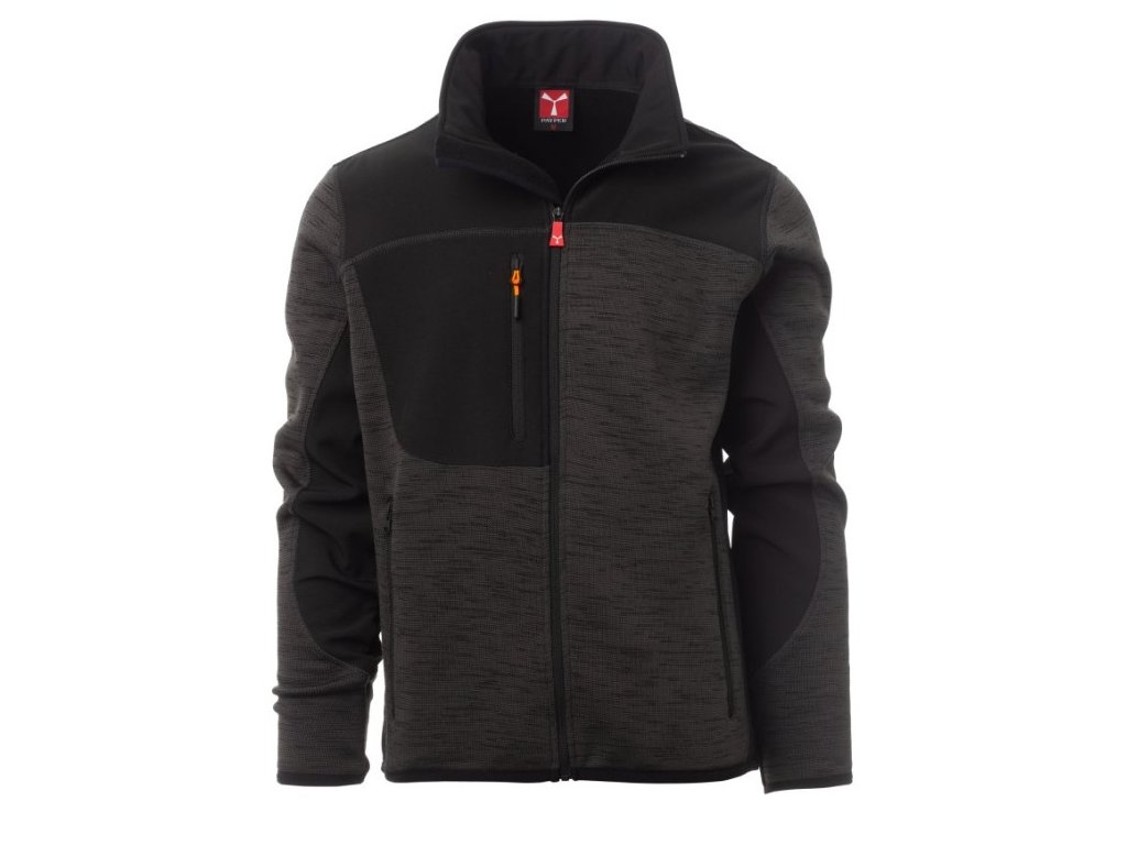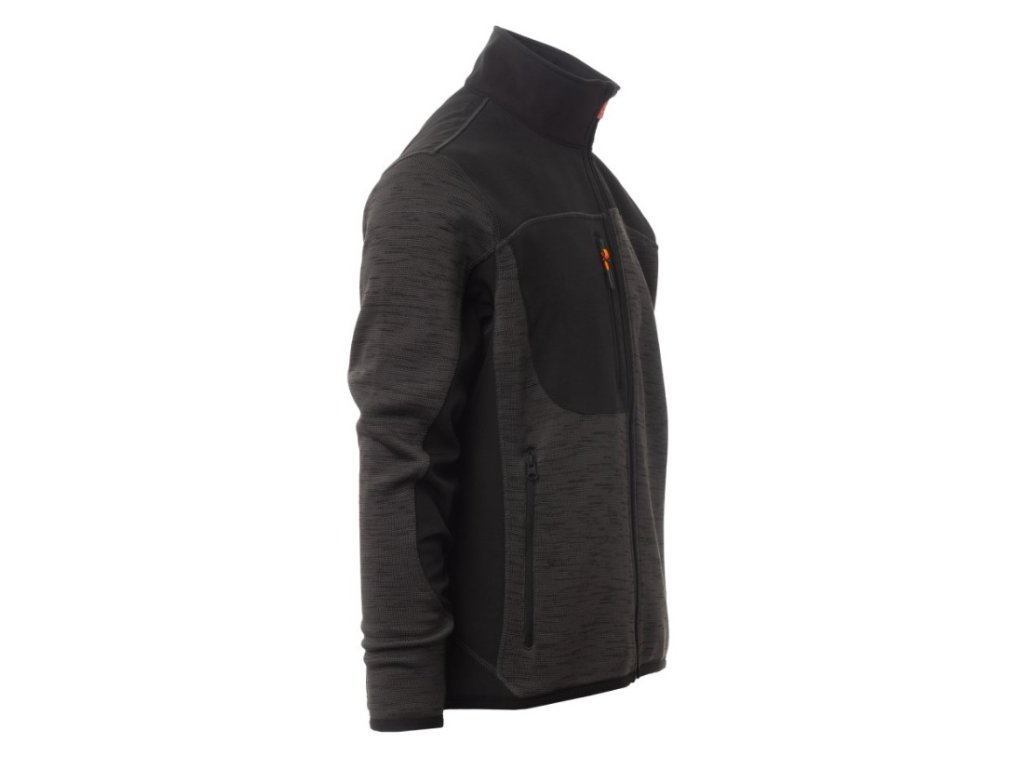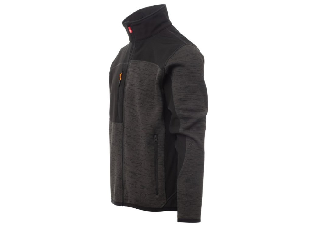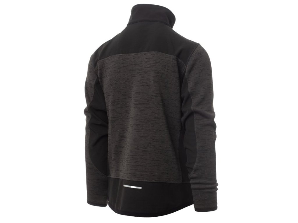 Mikina s kontrastními softshellovými vsadkami, zapínáním na páskový zip s jezdcem „semi-autolock“. Lemování na manžetách a spodní části. 2 boční kapsy na zip, 1 tvarovaná kapsa na hrudi se zapínáním na zip. Reflexní prvek na zadní straně.
