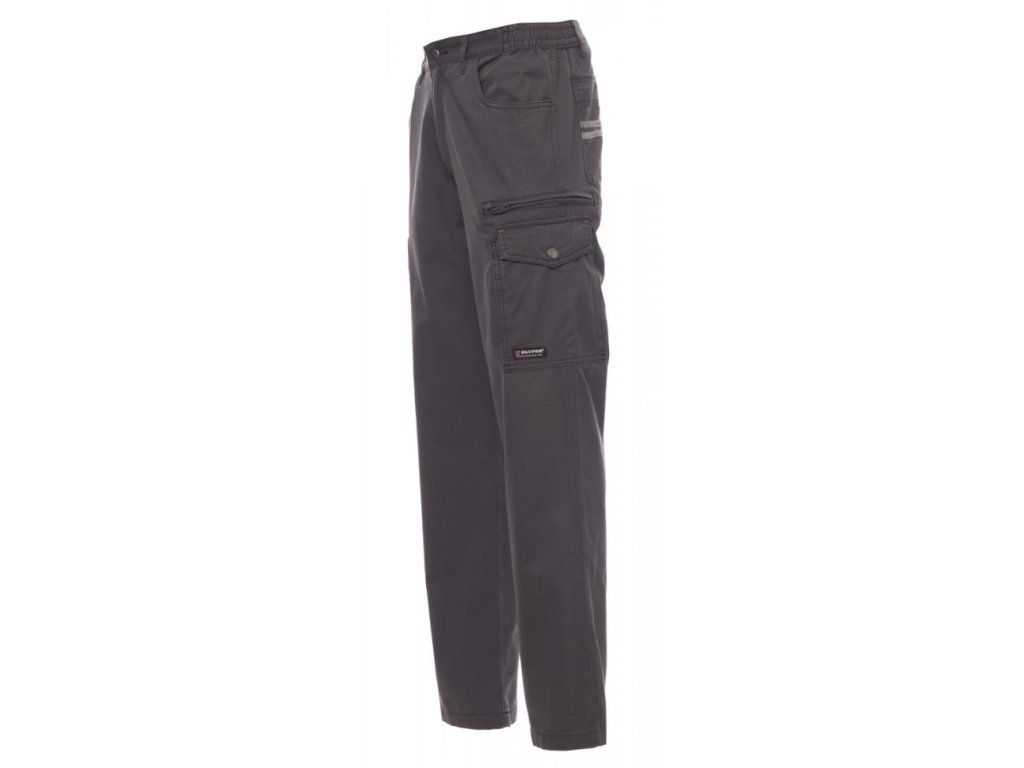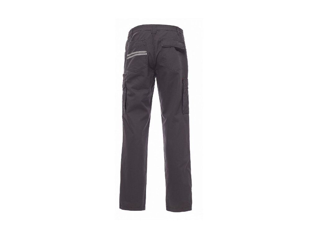 Pánské kalhoty, celoroční, elastické pásky na bocích a poutka v pase, zapínání na zip a na kovový knoflík, dvě přední kapsy džínového střihu, jedna postranní kapsa LOCK SYSTEM, jedna kapsa na zip, jedna víceúčelová kapsa, dvě postranní kapsy, z nichž jedna otevřená a druhá s klopou na suchý zip, kontrastní vsadky a prošití, reflexní pruhy na zadní kapse.