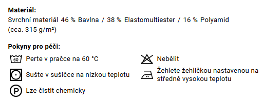 - robustní a elastické díky vysokému podílu bavlny ve směsi se strečem T400 a materiálem CORDURA® NYCO
