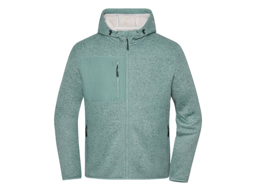 Pletený vzhled z vnější strany, vnitřní strana z materiálu sherpa, 2-vrstvá kapuce se šňůrkou, nastavitelná kapuce, podšitý zip s ochranou brady, YKK zipy, 2 velké vnitřní kapsy, 2 boční kapsy a 1 náprsní kapsa se zipem, melanžový vzhled, pratelné na 30°, nelze sušit v sušičce.